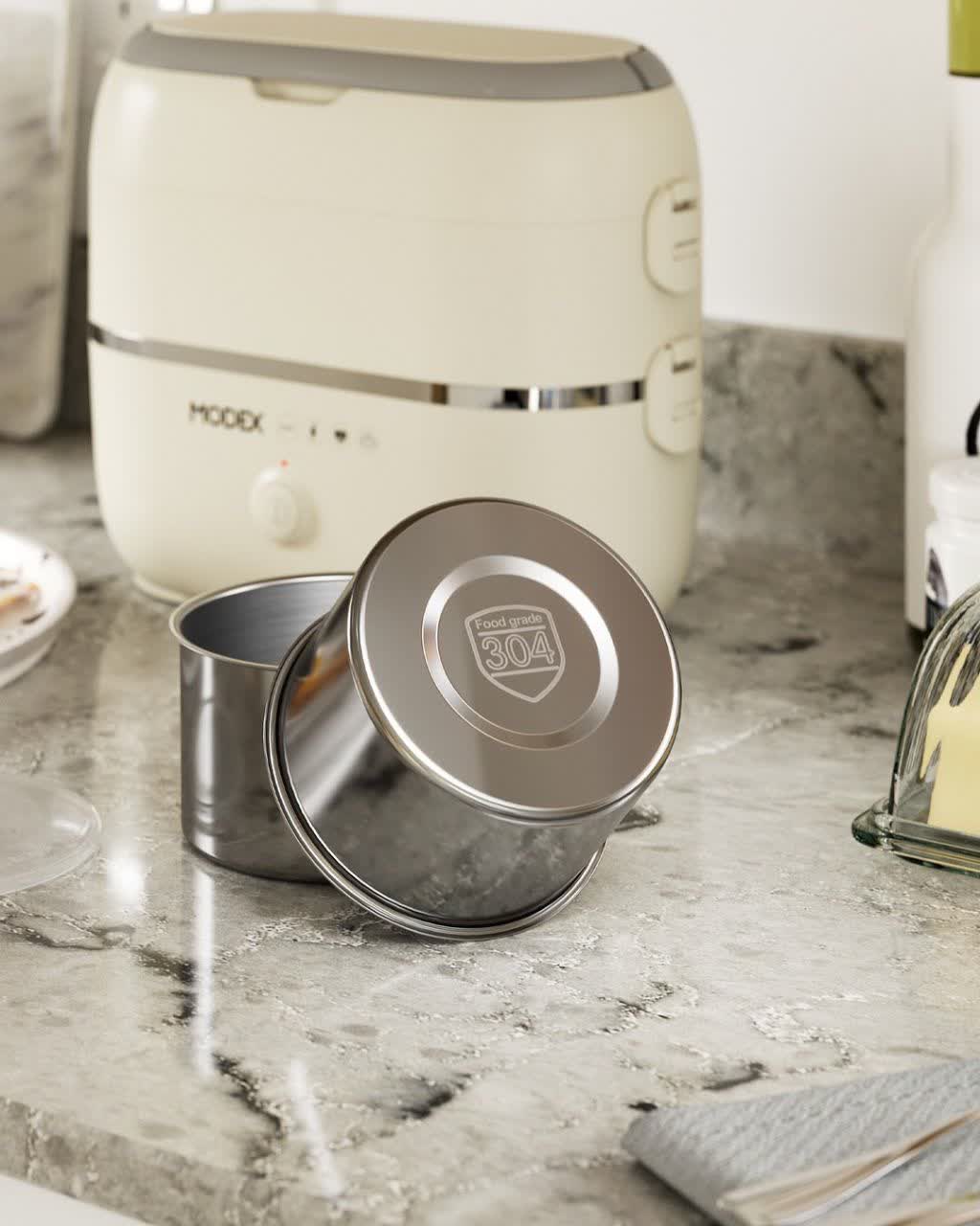 دو طبقه مجزا + 4 ظرف استیل درب دار(500 میلی لیتر)